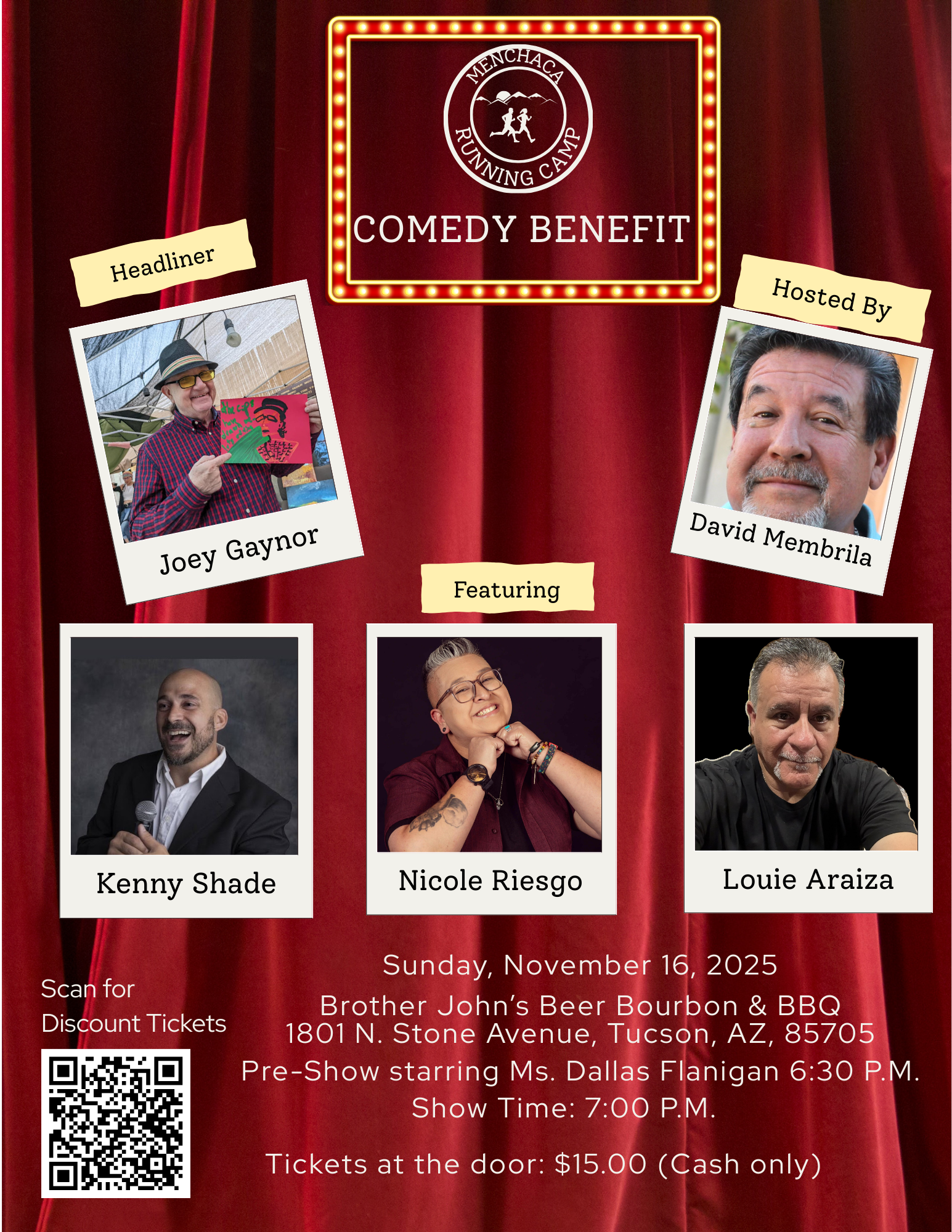 Please join us for an evening full of laughter! Enjoy delicious food from Brother John’s while helping our student-athletes chase their dreams. Be wowed by a pre-show performance starring Ms. Dallas Flanigan, a 2025 Menchaca Running Camp attendee. The proceeds go directly to high school runners as they prepare for the running camp, travel to elite races, and cover related expenses.